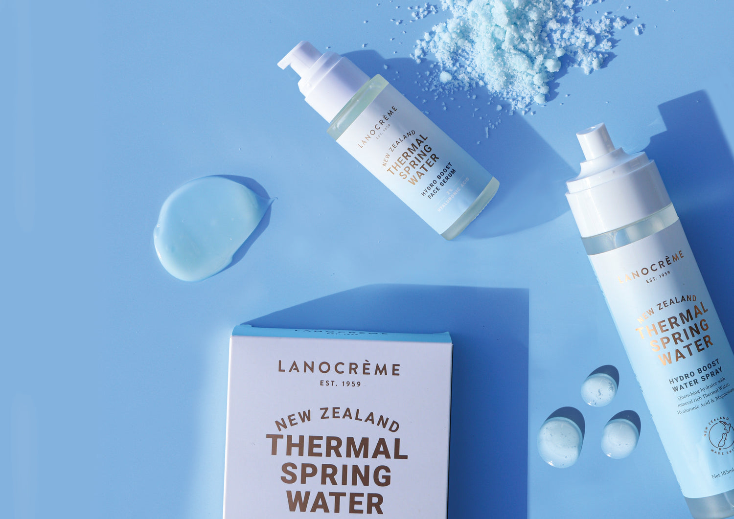 Lanocrème became the first Thermal Spring Water skincare range in New Zealand, exclusively sourced from the alpine region of Hanmer Springs, infused with mineral rich spring water for skin rejuvenation and restoration.
